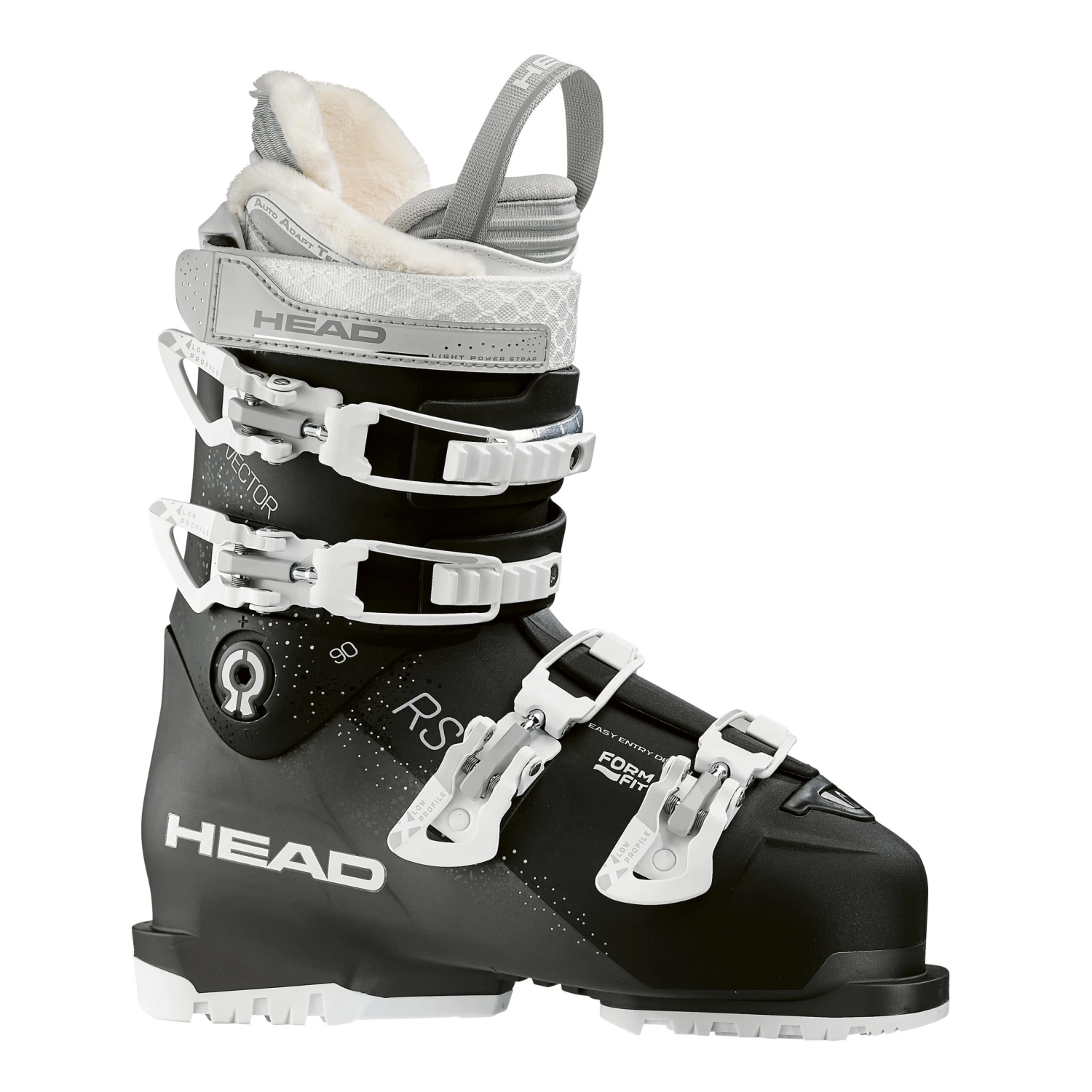 Der VECTOR RS 90 W mit einfachem Einstieg läutet eine Ära neuen Komforts und Leistung für fortgeschrittene Damen-Skifahrer ein. Das Form Fit Design mit dynamischer Rahmenkonstruktion sorgt für Kontrolle und ordentlich Kraft, während der Damen Perfect Fit S Innenschuh individuell anpassbaren Halt und Komfort bietet. Mikroverstellbare Schnallen und ein Verschlussband runden das Design mit schneller Kontrolle und guter Kraftübertragung ab. So kann jedes Terrain gemeistert werden.
