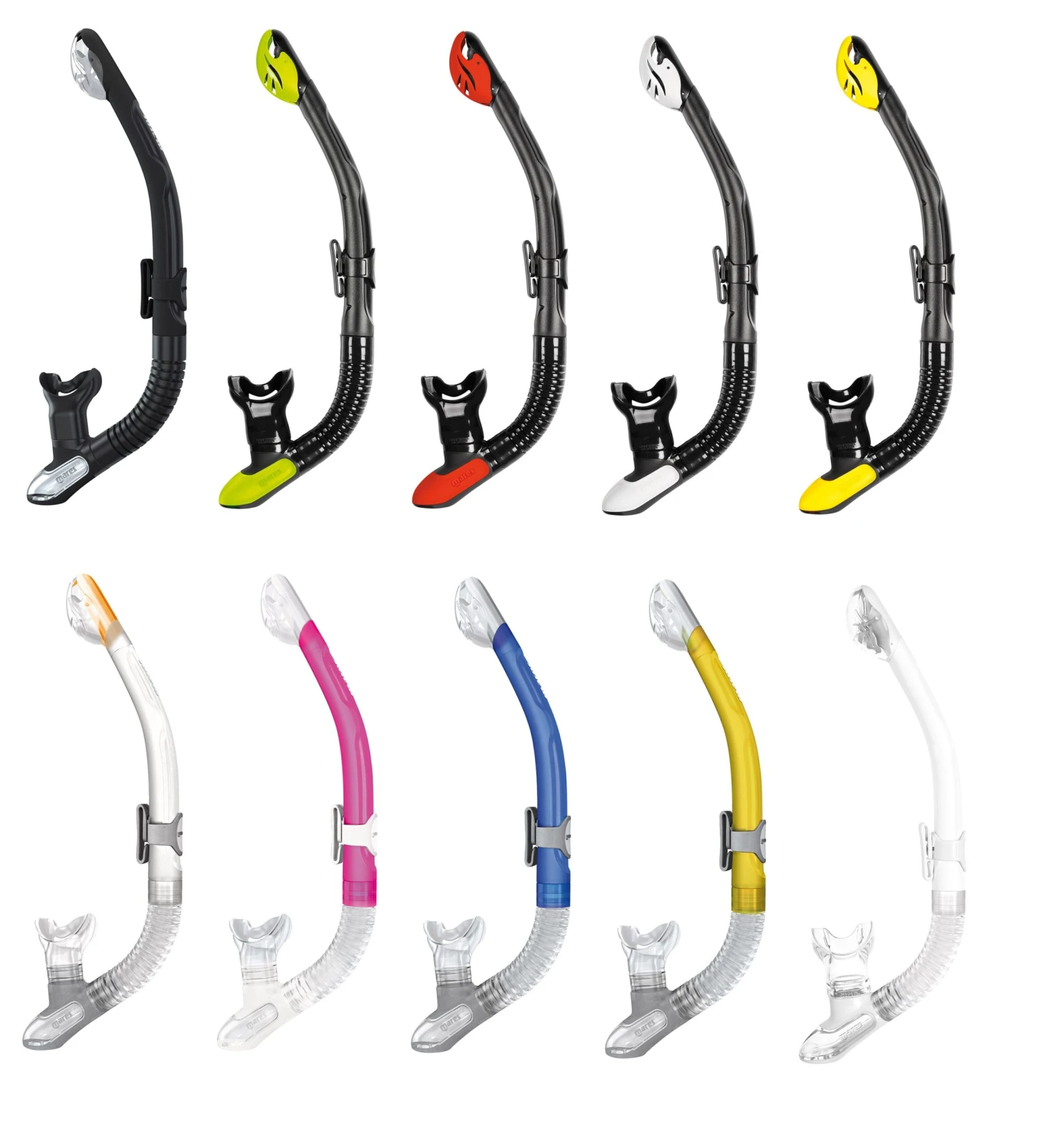 Mares hat diesen Schnorchel entwickelt, um Ihnen maximale Atemleistung beim Schnorcheln zu vermitteln und sämtliche „Fremdkörperwirkungen“ zu minimieren oder sogar auszuschließen: Ergo Dry ist sein Name! Er besitzt ein Mundstück mit Ausblasventil zum schnellen Ausblasen . Sein anatomisch geformte Mundstück mit Gaumensegel gewährleistet lange Schnorcheltrips ohne Ermüdung der Kiefermuskulatur . Am Übergang zum Rohr befindet sich ein flexibler Faltenschlauch, der einen angenehmen Sitz des Schnorchels ermöglicht. Außerdem ist auch die ergonomische Krümmung des Rohres kennzeichnend. Erst hierdurch wird schnelles Schwimmen möglich, da der Schnorchel aquadynamisch am Kopf anliegt und somit nicht zum unangenehmen „Flattern“ neigt. Der Maskenclip ist höhenverstellbar, drehbar und spielend einfach zu bedienen. Druckgefühle am Kopf sind damit Geschichte. Mit der sogenannten „Dry Top“ Spitze (Mares Patent) stellt Ergo Dry das Top-Modell innerhalb der Ergo-Linie dar. Dieser Schnorchel lässt über seine Spitze nämlich kein Wasser hinein.